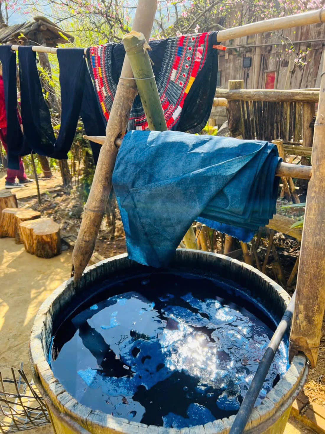 Nghệ thuật nhuộm chàm: Màu chàm xanh thẫm được tạo ra hoàn toàn từ lá chàm tự nhiên, với một quy trình phức tạp và đầy bí ẩn. Những bộ trang phục của người Dao Đỏ và người H'Mông đều mang màu sắc đặc trưng này.