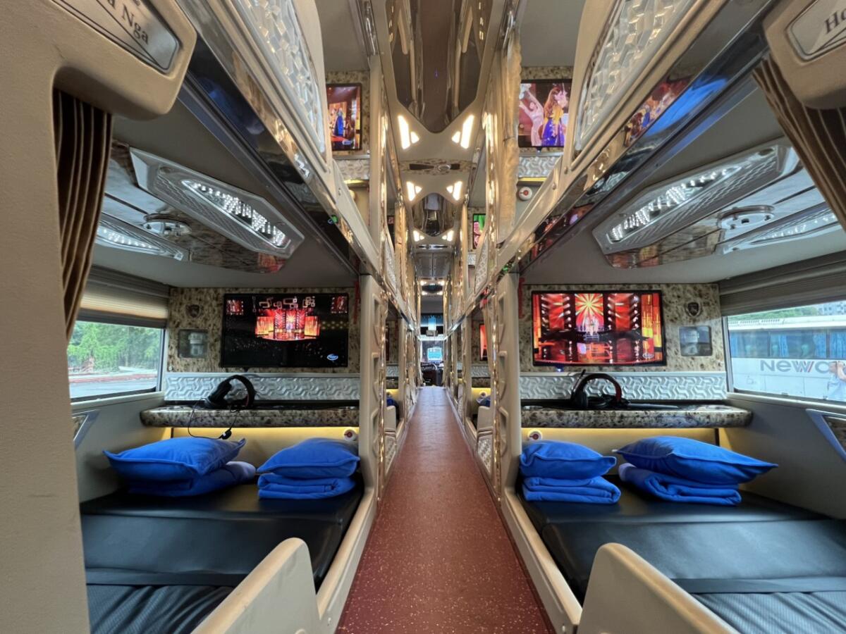 2. Tiện nghi hiện đại: Xe được trang bị đầy đủ tiện ích như cổng sạc USB, điều hòa, màn hình giải trí riêng và Wi-Fi miễn phí, giúp bạn luôn kết nối và không bỏ lỡ bất kỳ phút giây giải trí nào. Đặc biệt, hệ thống đèn ngủ nhẹ nhàng sẽ mang đến cho bạn giấc ngủ sâu, chuẩn bị tinh thần sẵn sàng cho chuyến khám phá Sapa vào ngày mới.