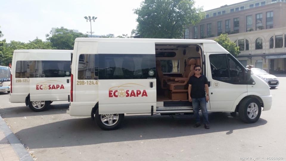 EcoSapa Limousine phục vụ du khách đi Sapa bằng loại xe Dcar có thiết kế 9 ghế rộng rãi, tiện nghi từ xe 16 chỗ thông thường, bao gồm 02 ghế thường và 07 ghế hạng thương gia. Trên xe có đầy đủ các dịch vụ và tiện nghi tốt nhất như: wifi, TV, Ổ cắm sạc, nước uống, khăn lạnh và đồ ăn nhẹ.