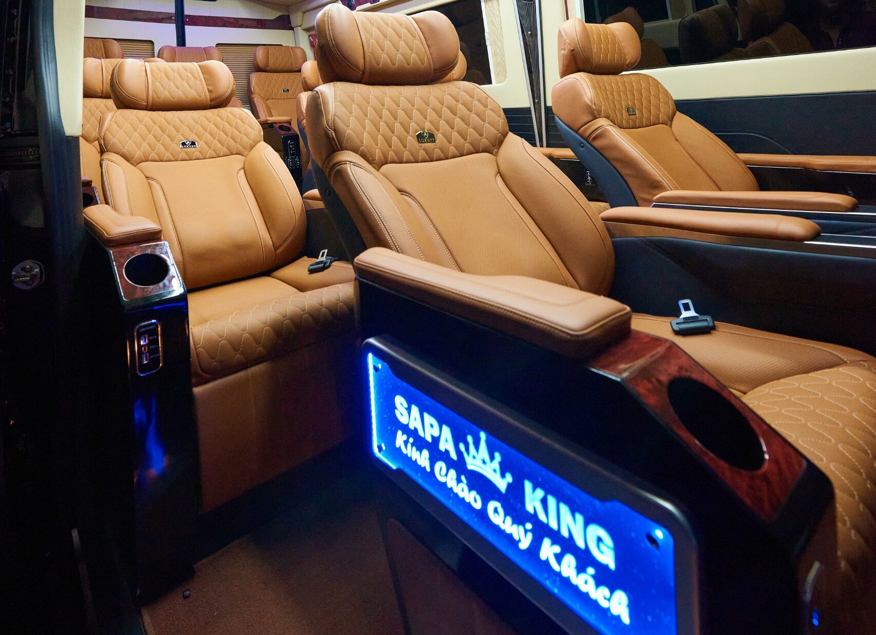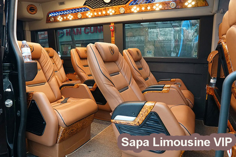 Xe SapaKing Limousine là loại xe Limousine VIP 10 ghế đời mới nhất, được thiết kế lại từ xe Hyundai Solati 16 ghế thông thường nên rất rộng rãi, thoáng mát. Xe có 01 ghế cạnh lái, 06 ghế VIP giữa xe và 03 ghế cuối xe. Các ghế đều được bọc da toàn bộ, êm ái, sạch sẽ.