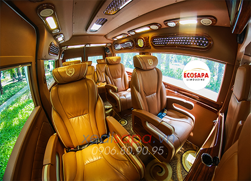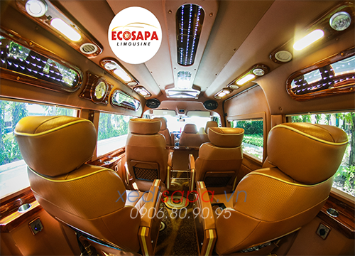 Xe EcoSapa là loại xe Dcar có thiết kế 9 ghế rộng rãi, tiện nghi từ xe 16 chỗ thông thường, bao gồm 2 ghế thường và 7 ghế hạng thương gia. Trên xe có đầy đủ các tiện nghi như: wifi, TV, sạc USB, khăn lạnh và nước uống.